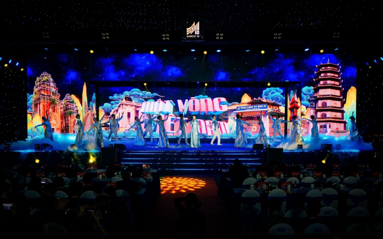 Điểm nhấn nghệ thuật mang tên “Bản lĩnh rạng ngời – May 10 vững bước” được dàn dựng công phu theo hình thức nghệ thuật chính luận, mang đến nhiều trải nghiệm đặc sắc cho người tham dự. Phim tài liệu “Tự hào May 10 – 80 năm chuyển mình cùng đất nước” tái hiện những giai đoạn lịch sử hào hùng của doanh nghiệp. Phần trình diễn thời trang với bộ sưu tập “An nhiên – Một thoáng thăng hoa” tôn vinh vẻ đẹp văn hóa Việt trong dòng chảy đương đại. Bên cạnh đó, nghi thức “Khát vọng tương lai” đã khẳng định quyết tâm của tập thể lãnh đạo và người lao động trong kỷ nguyên mới.