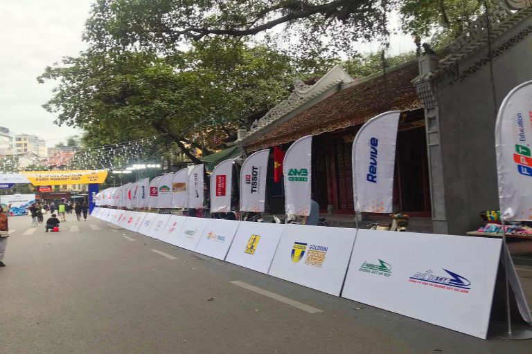 - Ưu điểm: tiện dụng, thi công nhanh chóng, tạo hiệu quả tối ưu về hình ảnh quảng cáo, thường được sử dụng trong các giải chạy hoặc sự kiện quảng bá.